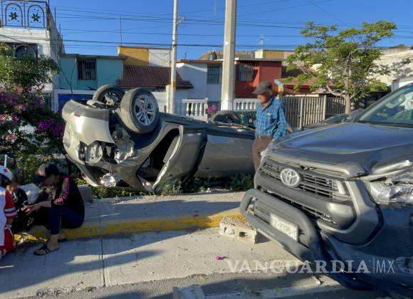 Al intentar incorporarse de manera inmediata a la vialidad para ingresar del periférico Luis Echeverría Álvarez a la calle Cuquita Cepeda, el conductor de una camioneta provocó un accidente que terminó con la volcadura del vehículo señalado como responsable, en Saltillo.