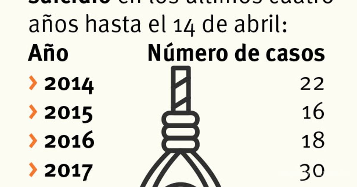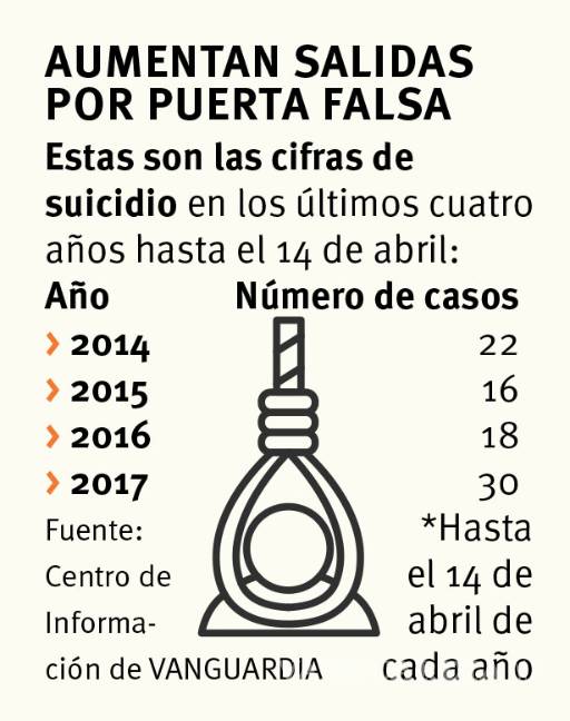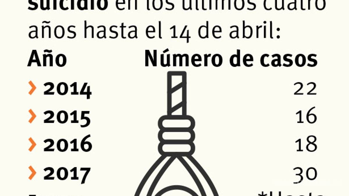 Al 14 de abril del año pasado se habían reportado 18 suicidios, mientras que para este 2017 ya se contabilizan 30.