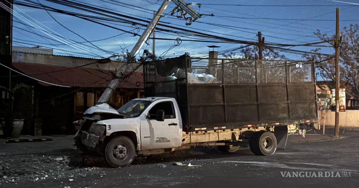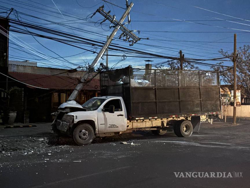 Un camión recolector de basura protagonizó un aparatoso accidente en la colonia Real de Peña, en Saltillo, luego de que, presuntamente debido a una falla en los frenos, el conductor se impactara contra un poste de concreto perteneciente a la Comisión Federal de Electricidad (CFE), dejando sin servicio eléctrico a varias cuadras del sector.