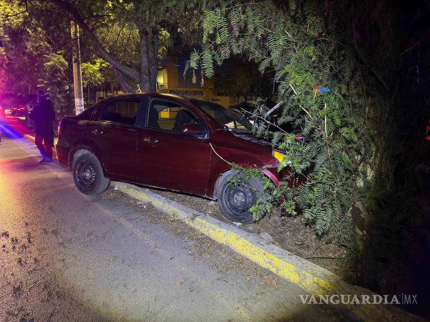Un automóvil Chevrolet Aveo quedó abandonado tras estrellarse contra un árbol en la colonia 26 de Marzo en Saltillo. El accidente ocurrió cerca de las 00:30 horas en el bulevar Humberto Cid González, cuando el vehículo era conducido de norte a sur con cinco jóvenes a bordo.