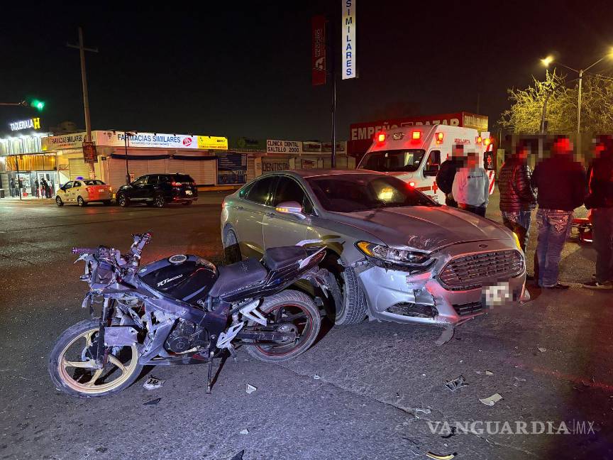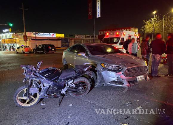 Se estrellan por ignorar luz roja en la Saltillo 2000; motociclista resulta herido