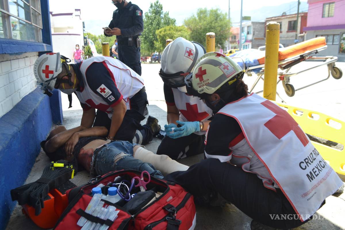 Con una probable fractura en la pierna izquierda además de golpes diversos y excoriaciones, un joven de 18 años fue trasladado a un hospital de la ciudad tras derrapar en calles del fraccionamiento Urdiñola.