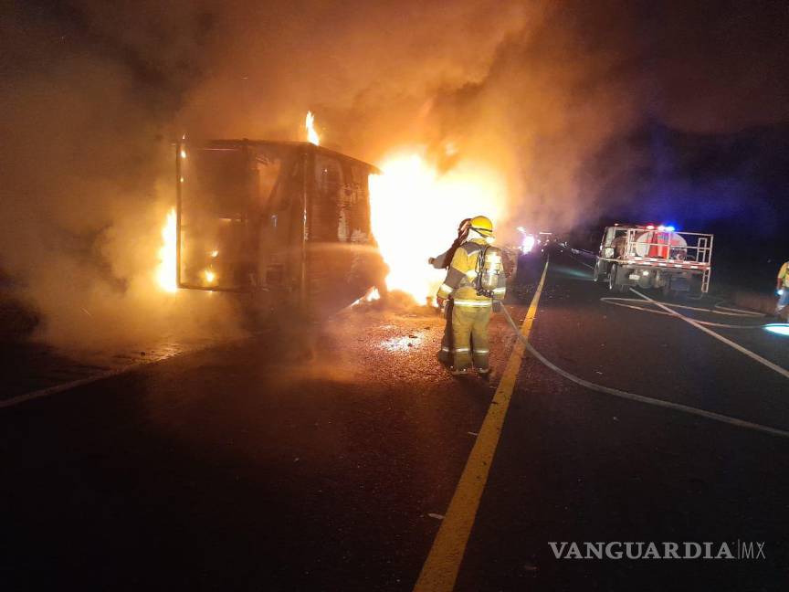 Elementos de Bomberos y Protección Civil de Ramos Arizpe acudieron al lugar para sofocar las llamas y evitar que se extendieran a la totalidad de la carga.
