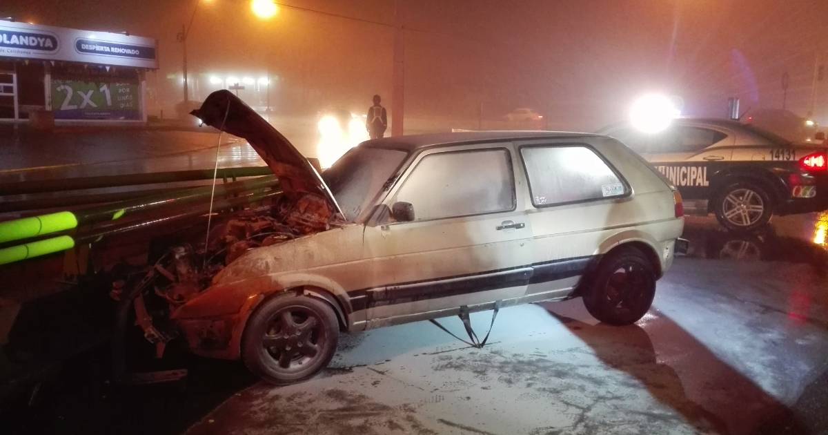 El auto Golf con placas 29-DSM para personas discapacitadas circulaba sobre Valdés Sánchez y al intentar tomar periférico LEA derrapó por la velocidad en que tomó la curva chocando contra el camellón y después el muro de contención donde se inició las llamas.