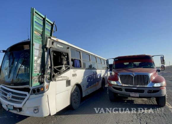 Se incrusta puerta de camión en transporte de personal en la Saltillo-Zacatecas; conductor lesionado