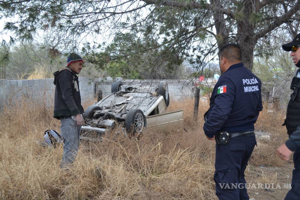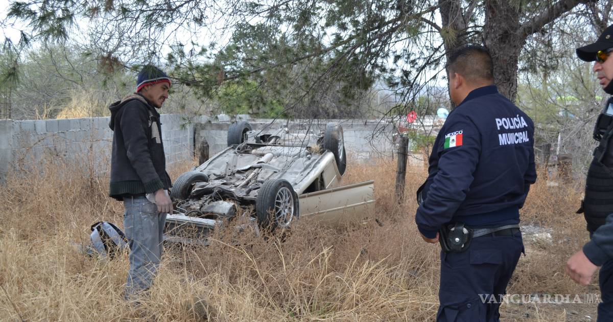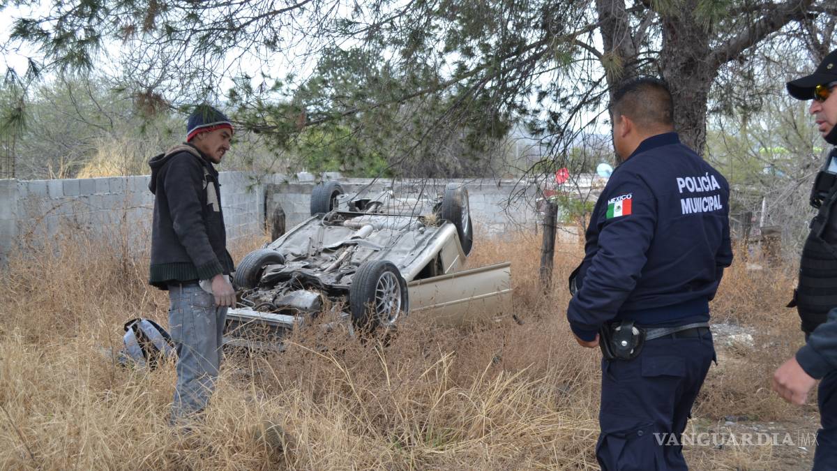 Se le ‘cierra’ auto y termina volcado, al sur de Saltillo