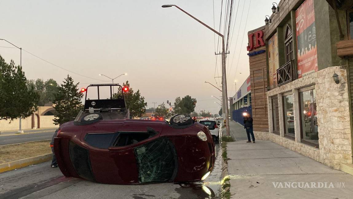 Se le empaña el parabrisas, choca y vuelca en Saltillo