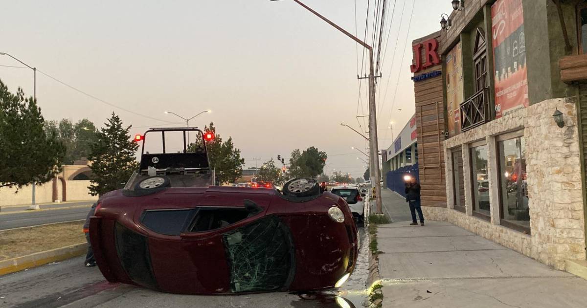 Un conductor de un vehículo Dodge Neón volcó en Saltillo tras impactarse contra el camellón central, presumiblemente debido a que se le empañó el parabrisas.