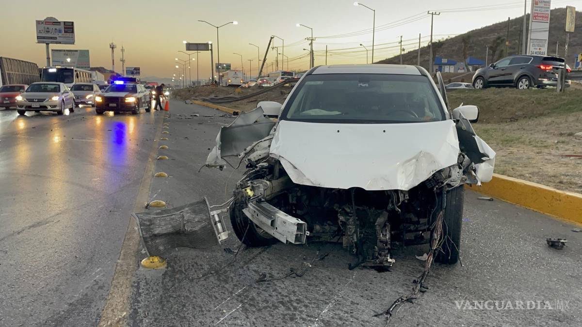 Se le sale el motor a distraído conductor tras estamparse contra tráiler, en la carretera Monterrey-Saltillo