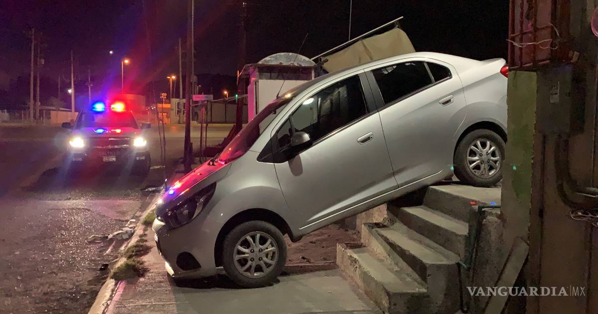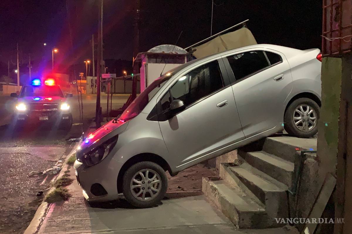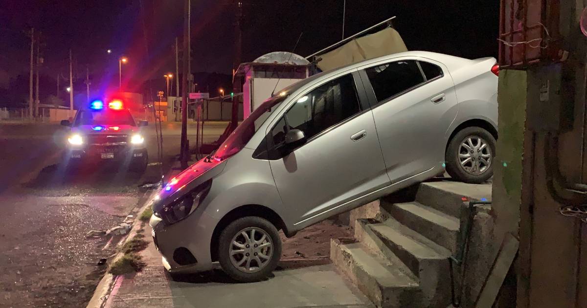 La parte delantera del automóvil Chevrolet Aveo con placas de circulación FPX 9088 se fue de frente en declive terminando esa parte ahí y la parte trasera en lo alto de lo que era una bajada, pero con escalones.
