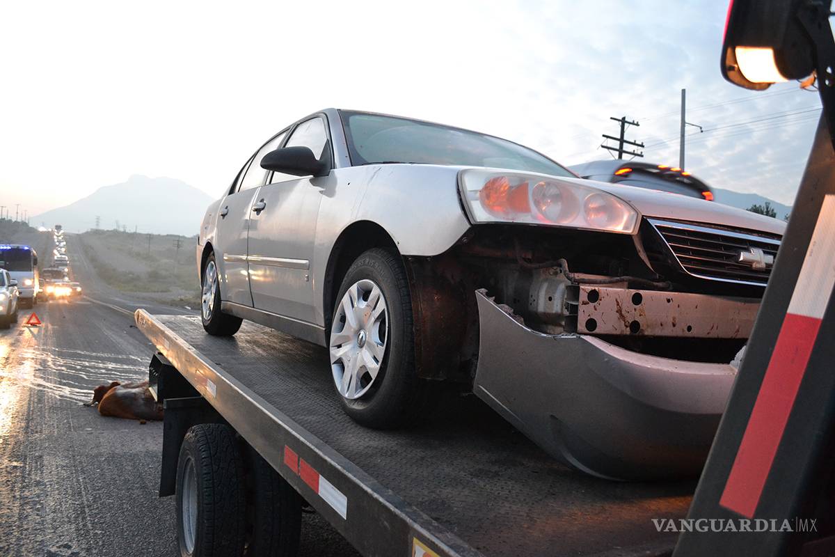 Se llevan vaca entre las llantas en carretera Saltillo-Zacatecas