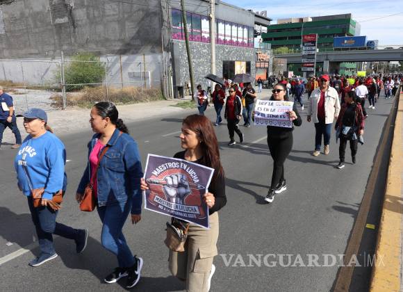 Cerca de 300 docentes de la región sureste realizaron una marcha este lunes por dos de las principales avenidas de Saltillo, en rechazo a la reforma a la ley del ISSSTE y para exigir mejoras en las condiciones laborales de los maestros.