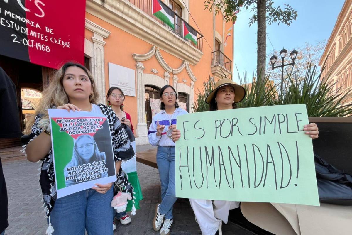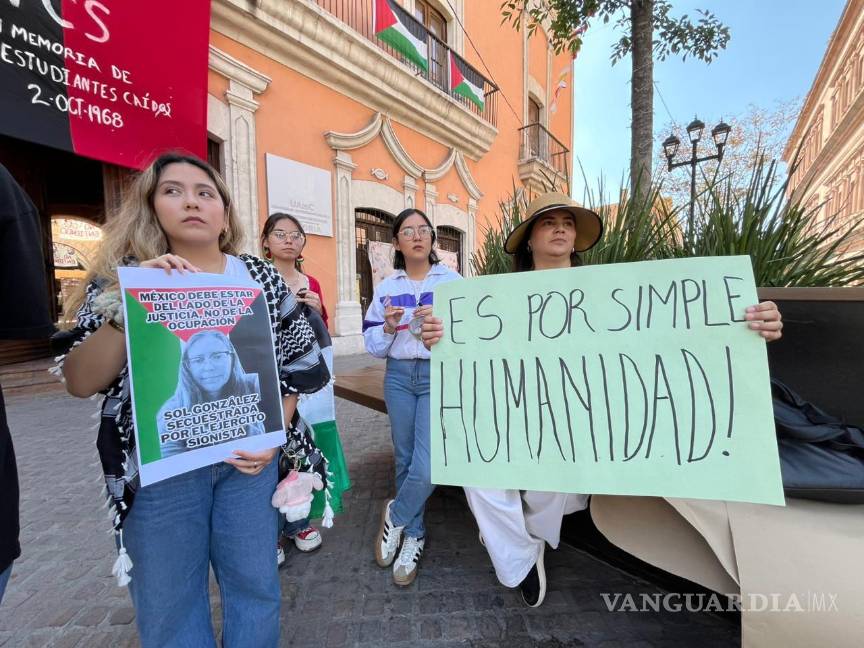 Este jueves se llevó a cabo una manifestación en el centro de Saltillo en solidaridad con los mexicanos que viajaban en la flotilla humanitaria Global Sumud, interceptada esta semana por fuerzas israelíes cuando transportaba ayuda hacia Gaza.