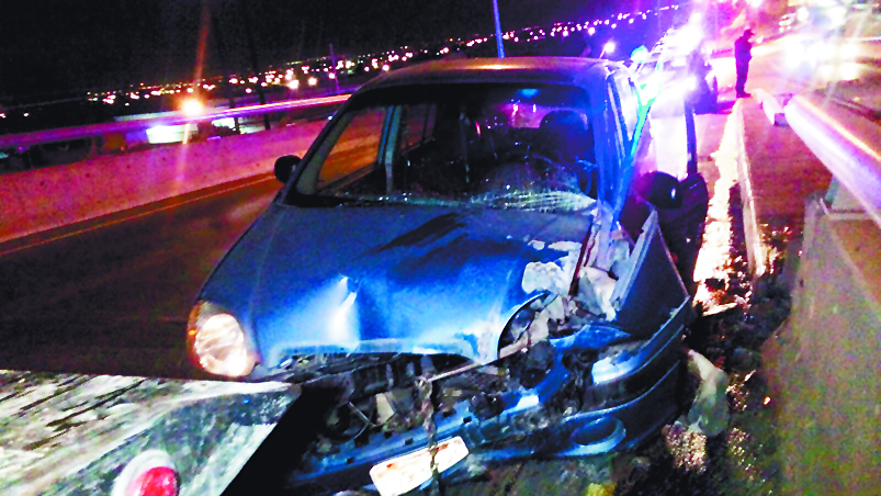 Los hechos ocurrieron ayer cerca de las 04:00 horas cuando el conductor de un auto tipo Atos con placas FJG8494, que circulaba de Oriente a Poniente, perdió el control de la unidad chocando contra una de las bases de concreto, provocando a su vez que un automóvil que circulaba en dirección contraria se accidentara originando un caos vial en el lugar.