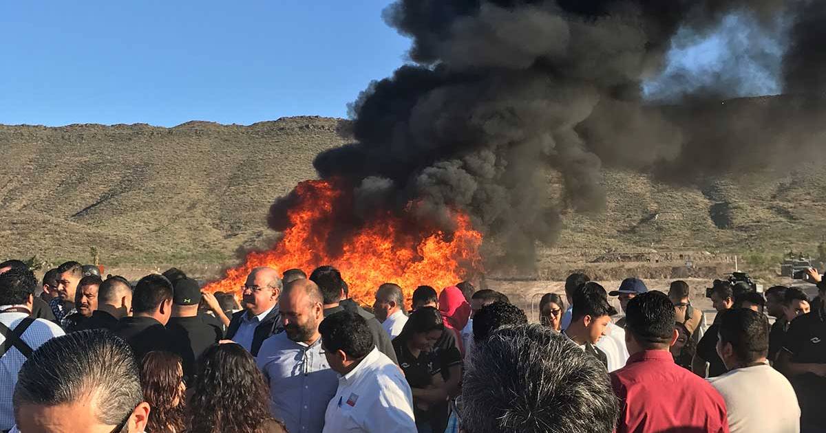 Drogas y otros artículos incautados a la delincuencia organizada con un valor de 124.5 millones de pesos fueron destruidos y quemados esta mañana en un acto realizado por la Secretaría de Gobierno del Estado.