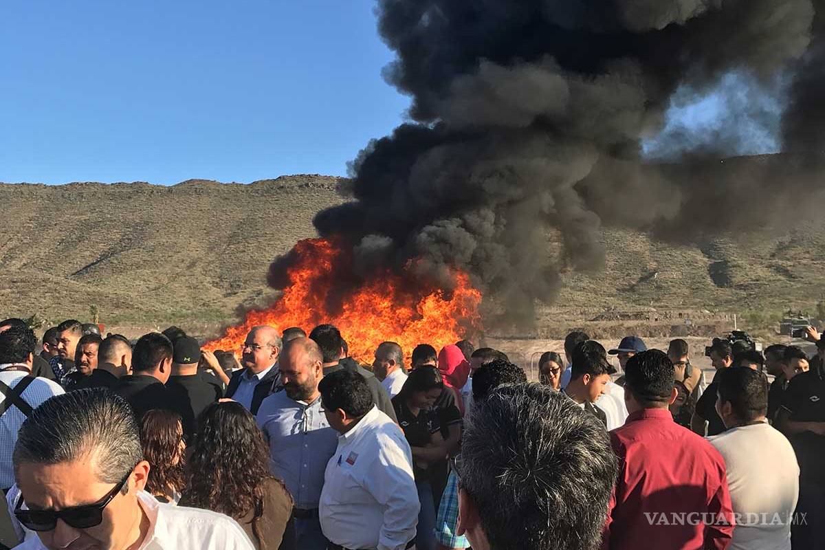 En su intervención, Victor Zamora Rodríguez, Secretario de Gobierno de Coahuila, precisó que la destrucción de droga incautada, lo mismo que otros instrumentos utilizados por el crimen organizado para mantener sus fuentes de financiamiento, serán, hasta el último día de la administración, objeto de persecución incesante de las fuerzas policiales.