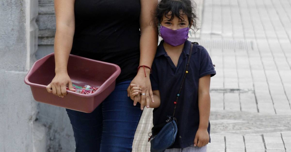 En su canasta trae dulces, chicles, paletas que ofrece a los transeúntes a cambio de una aportación voluntaria para llevar el sustento a sus tres hijas: Amalia, de 5 años, Nayeli, de 6 años y Lidia, de 8 meses.