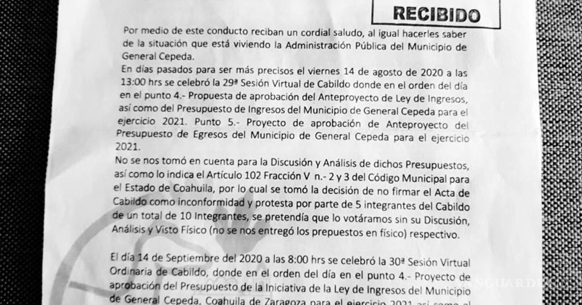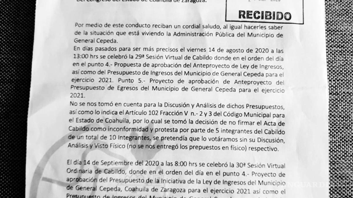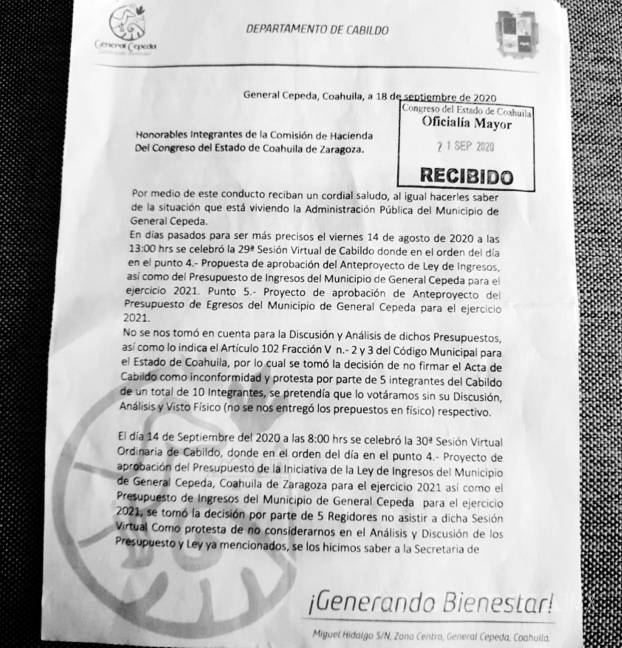 Será el Congreso de Coahuila el que decida si separa de su cargo a cuatro regidores de General Cepeda