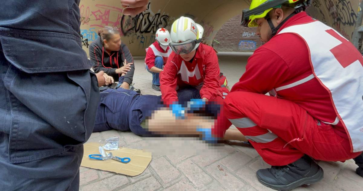 Al intentar continuar, resbaló y cayó desde la parte alta hasta la sección inferior del paso a desnivel, provocándose una fractura en la pierna derecha a la altura del fémur.