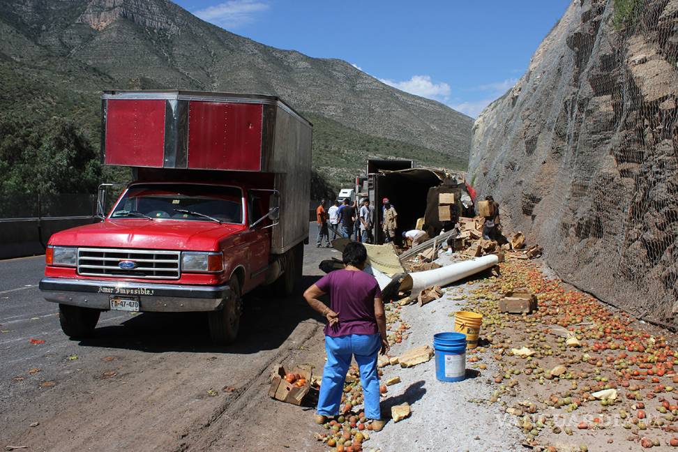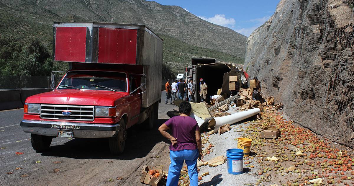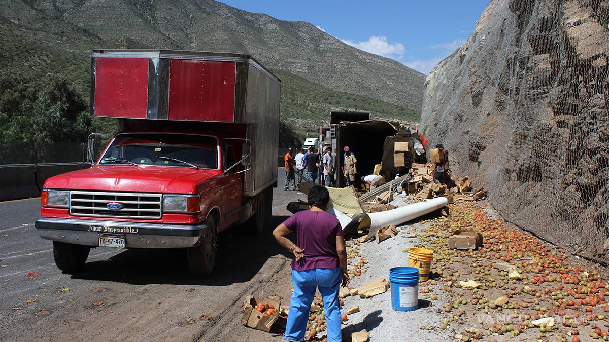 Vuelca tráiler en "Los Chorros"y su mercancía es saqueada, en zona sureste de Coahuila
