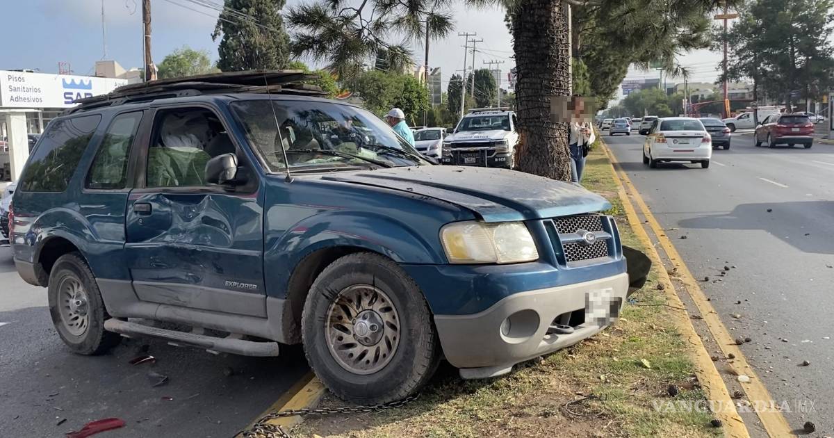 Sin frenos, camioneta causa choque múltiple y termina sobre el camellón en Saltillo