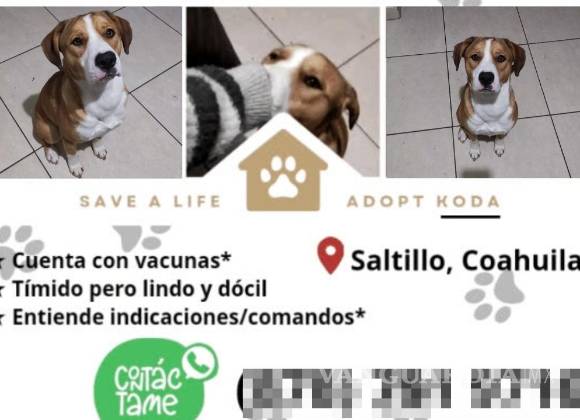 A través de las redes sociales, un grupo de amigos pidieron ayuda para encontrar un hogar permanente para Koda, un perrito de 1 año de edad que fue abandonado por su anterior dueño en la ciudad de Saltillo.