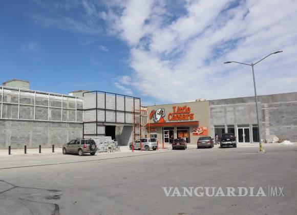 Al lado de donde se construye la tienda ya se encuentra una sucursal de Little Caesar’s, además de que también se notan banquetas, pavimento, cajones de estacionamiento y bolardos.