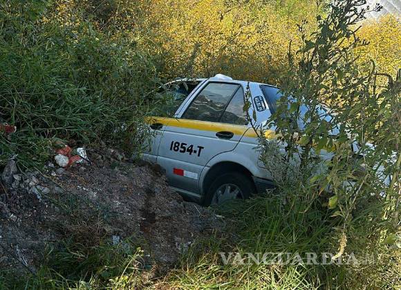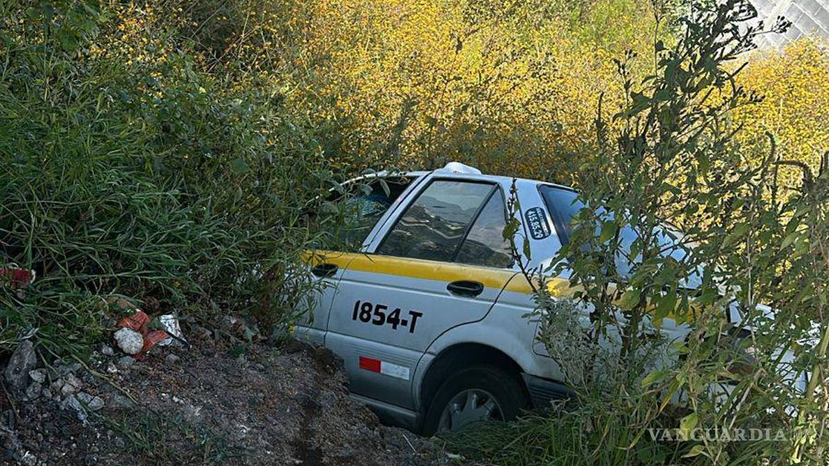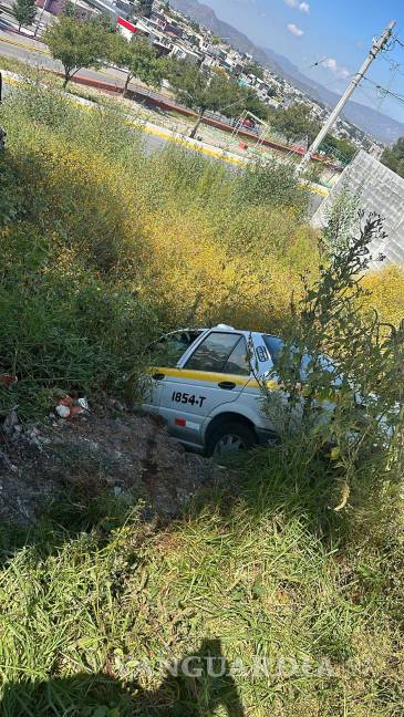 Taxista dormita, cae en arroyo y abandona la unidad, en Saltillo