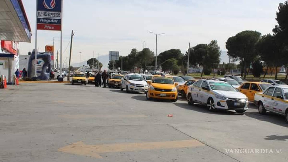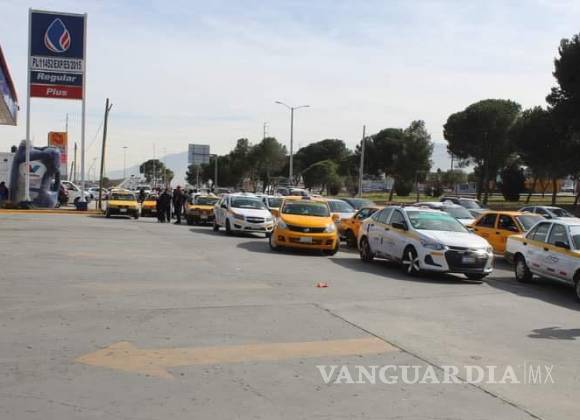 SALTILLO, COAH.- Medio centenar de taxistas de la línea base “Taxi Seguridad” se manifestaron en la gasolinera Los Pinos, localizada sobre en el rancho Las Varas, donde les vendieron gasolina con agua.