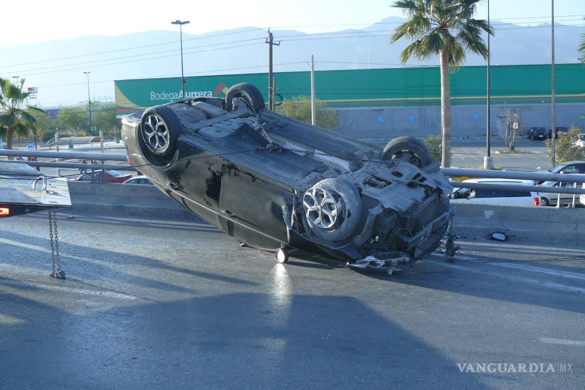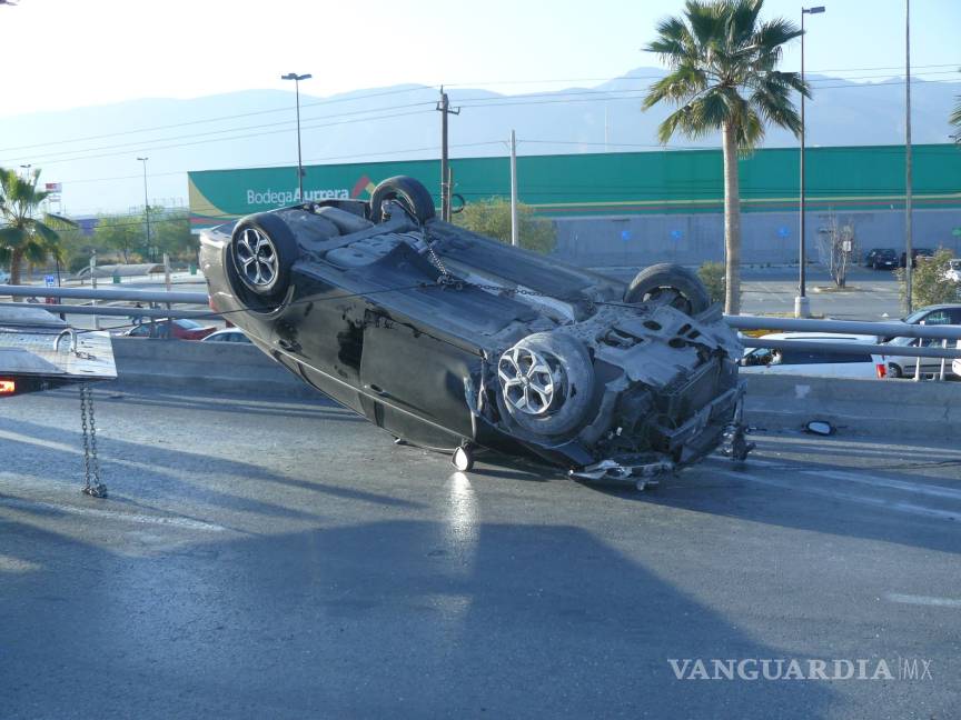 Javier Alejandro Martínez Ramírez por poco pierde la vida al volcar el vehículo que él mismo manejaba sobre el puente de bulevar Fundadores, en la colonia Mirasierra.