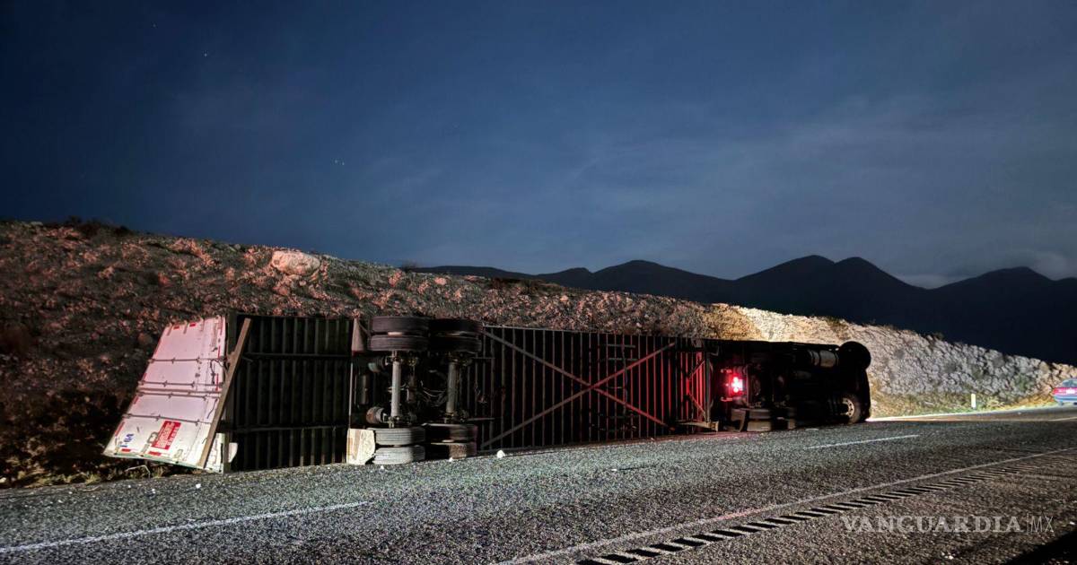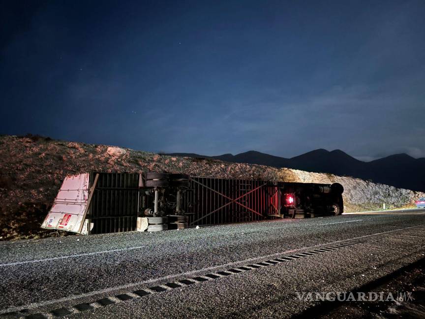 Un aparatoso accidente ocurrido la noche de este lunes sobre la carretera libre Saltillo–Monterrey movilizó a cuerpos de auxilio y a elementos de la Guardia Nacional, luego de que un tractocamión volcara a la altura del kilómetro 28 del tramo carretero.