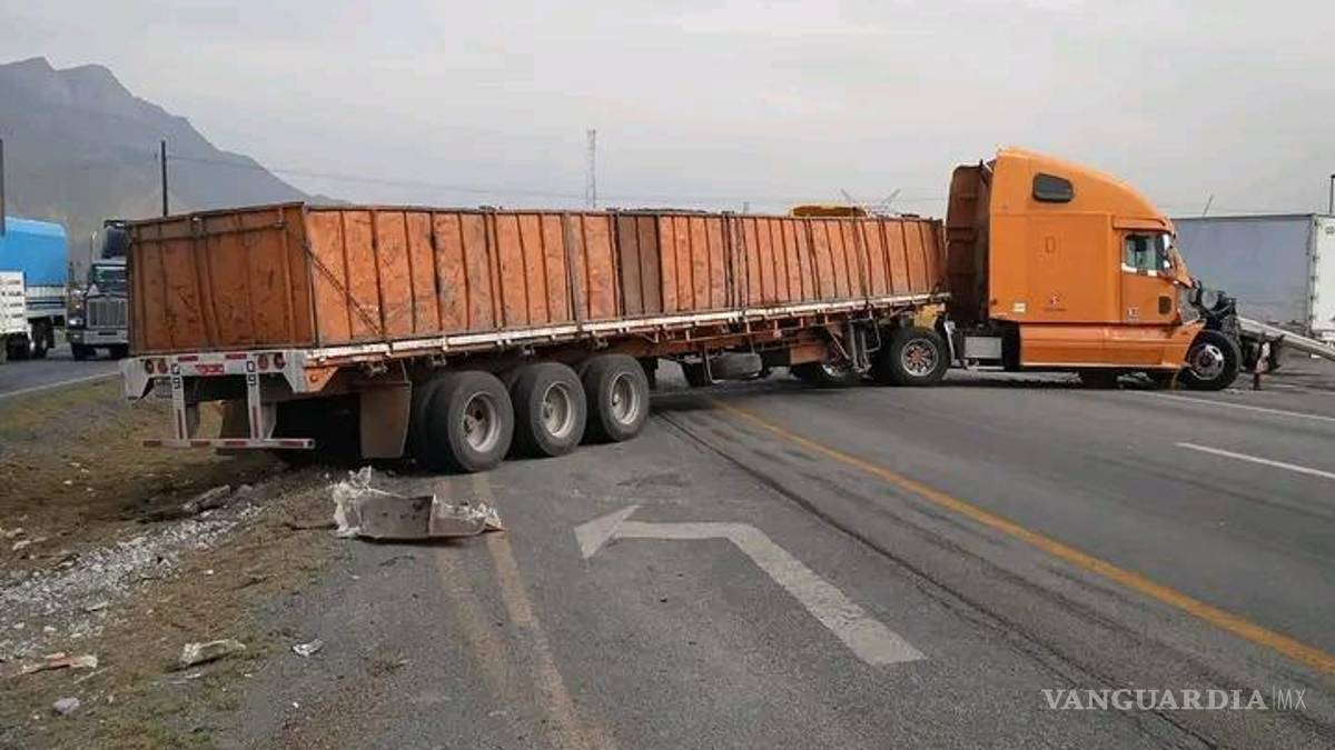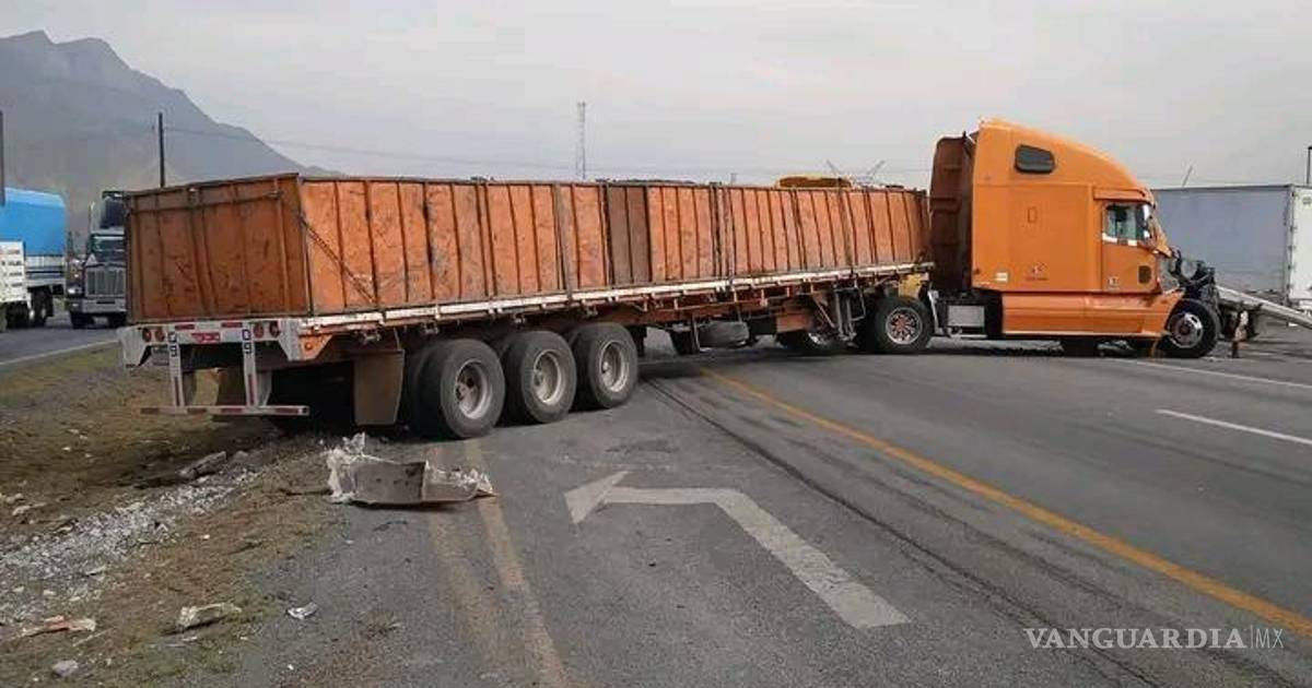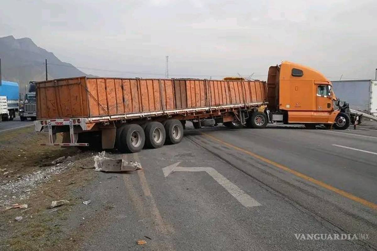 Tráiler choca contra poste y bloquea la carretera Monterrey-Saltillo