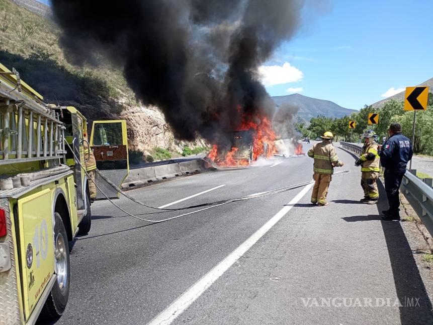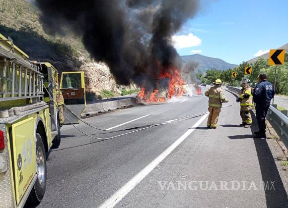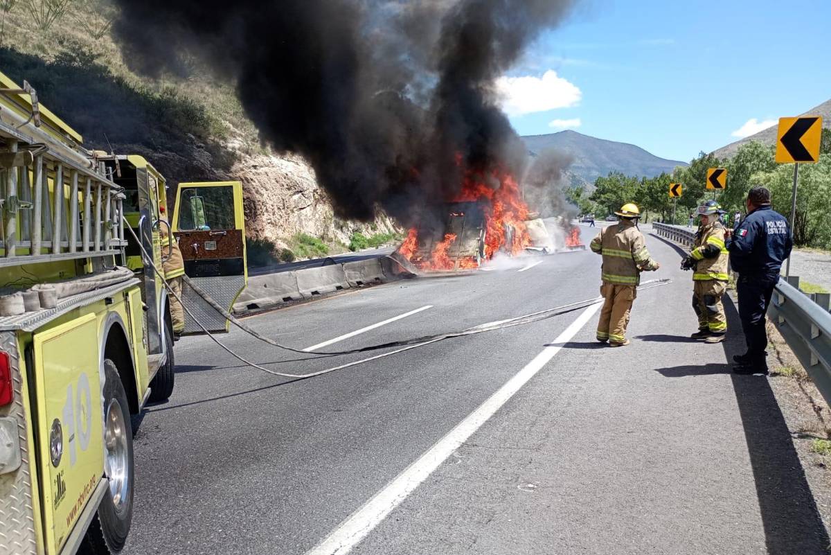 Un tráiler terminó reducido a cenizas la tarde de este domingo, luego de sufrir un choque con incendio en la Carretera Federal 57, a la altura del conocido tramo de Los Chorros.