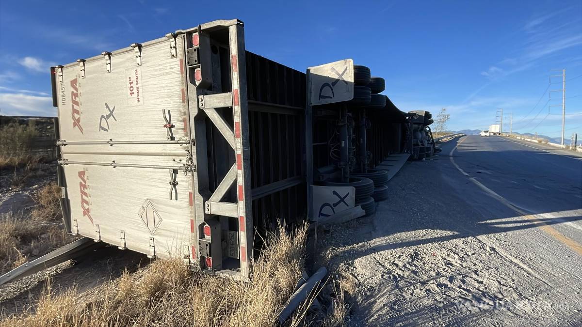 Un trailero terminó volcando la mañana de este sábado al circular a exceso de velocidad sobre la carretera a Zacatecas, en su entronque con la carretera a Derramadero, quedando lesionado y siendo trasladado a un hospital de la ciudad.