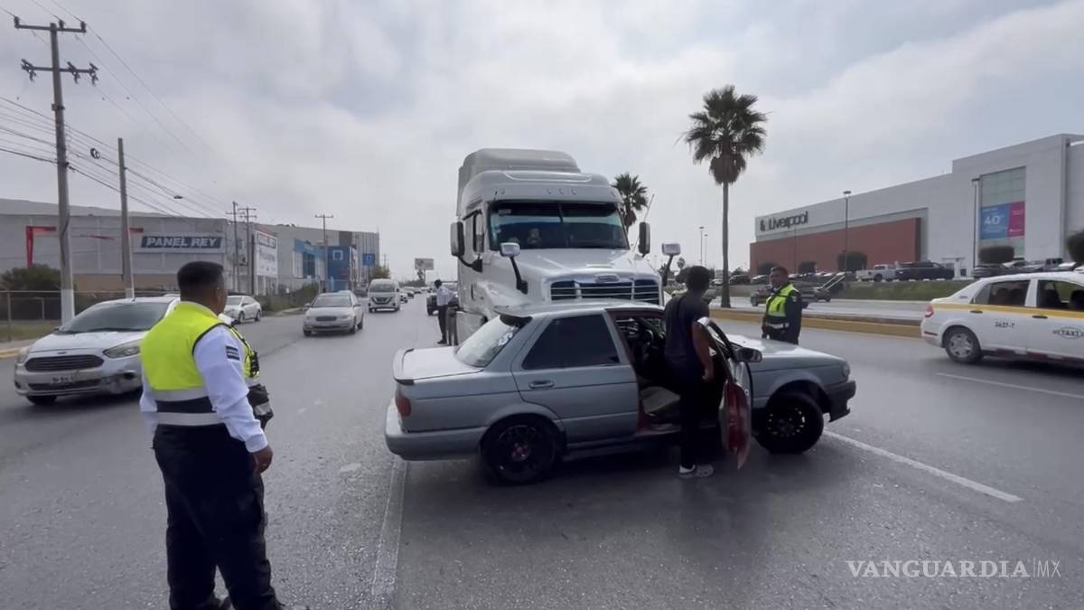 Trailero cambia de carril y se lleva auto de encuentro, al norte de Saltillo
