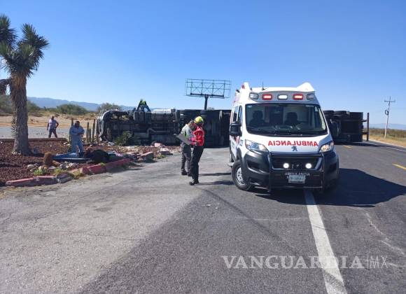 El cansancio al volante provocó que un trailero dormitara y volcara su vehículo sobre la carretera Saltillo-Monclova, a la altura del kilómetro 81+800, ocasionando el cierre parcial de la vialidad.