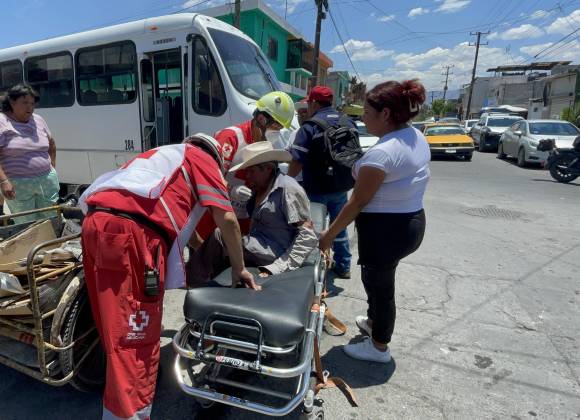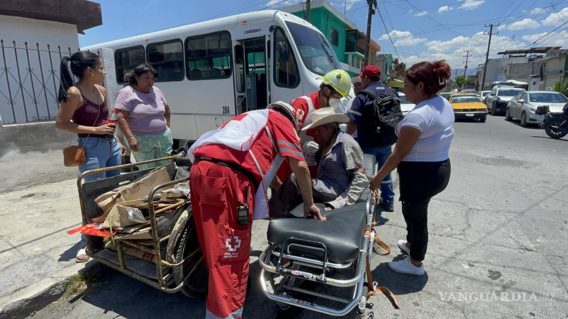 Un hombre de la tercera edad que se encontraba laborando en la recolección de cartón a bordo de su triciclo, fue embestido por el operador de un camión de transporte público la tarde de este martes en la colonia Anáhuac, al poniente de Saltillo.