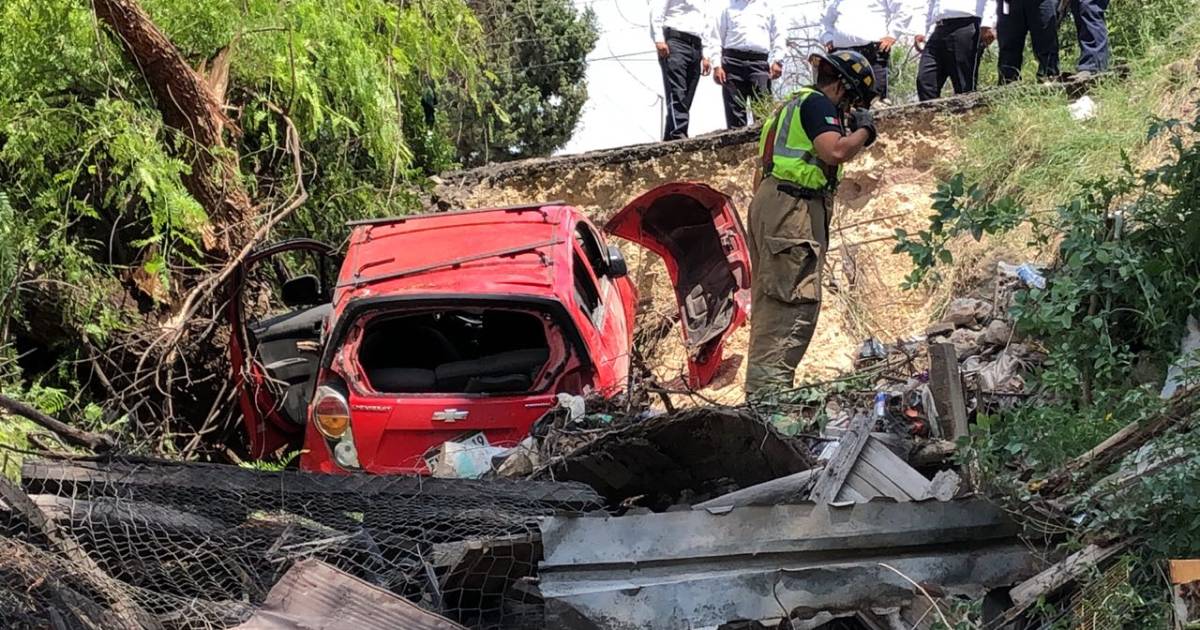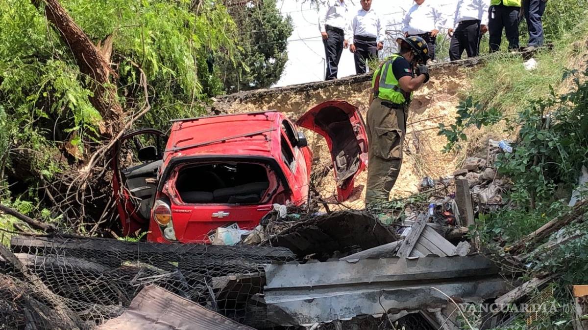 Saltillo.- Un vehículo de pasajeros cayó al fondo de un patio, en colonia Landín, de acuerdo a los primeros testimonios la combi se salió de control en una de las curvas yéndose al fondo, hacia las viviendas.