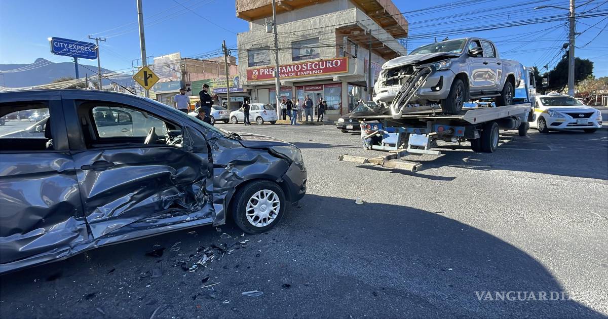 Trasnochado confunde luz del semáforo y provoca accidente, al sur de Saltillo