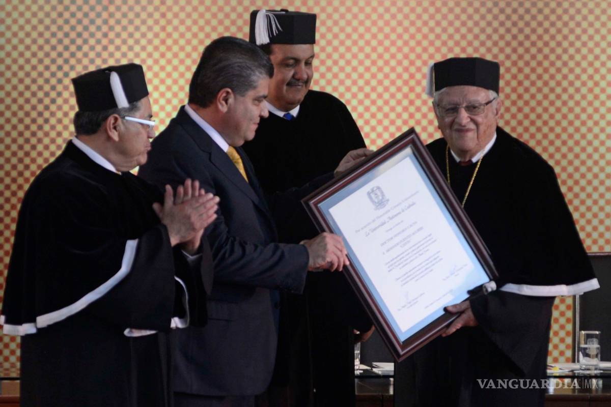El grado de Doctor “Honoris Causa” fue entregado al escritor saltillense Armando Fuentes Aguirre “Catón” por parte de la Universidad Autónoma de Coahuila, por su trayectoria como docente, directivo del Ateneo Fuente, y fundador de la Facultad de Ciencias de la Comunicación.