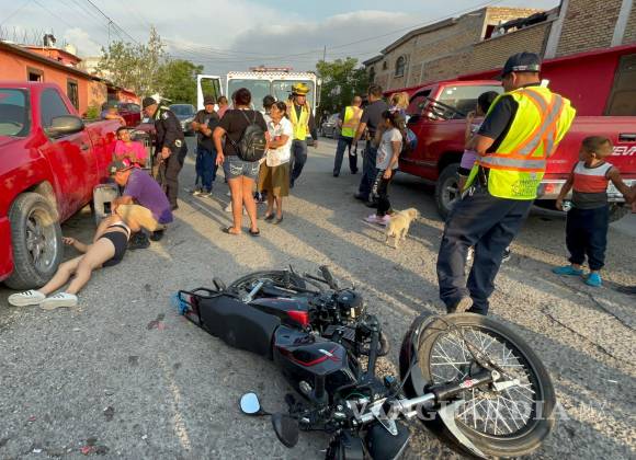 Una pareja y su bebé que viajaban en moto chocan contra auto, en Saltillo