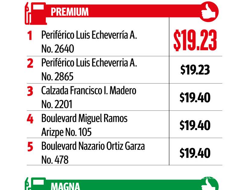 Únicamente una gasolinera de la Región Sureste de Coahuila ofrece el combustible Magna por debajo de los 18 pesos, de acuerdo con datos de la Comisión Reguladora de Energía. Esta semana los precios más altos registrados fueron de 19.65 y 18.16 para la Premium y Magna respectivamente.