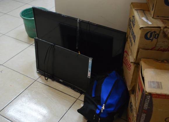 En el lugar se presentó el propietario de las televisiones de 40 y 24 pulgadas así como de los zapatos nuevos que tenía en el interior de una maleta color azul, quien identifico los objetos como de su propiedad.