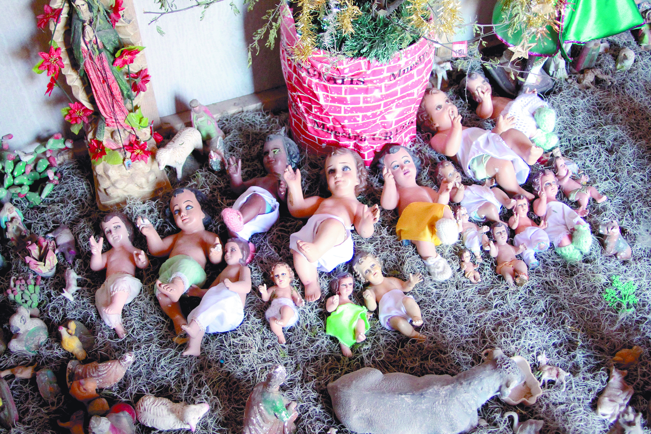 Cada uno es importante, tiene de todos los tamaños, desde el número cero hasta el 7, todos acomodados bajo el pino navideño que aún no quitan él y su esposa, los tiene vestiditos y acostados en el musgo, aunque a veces los tapa para que no se llenen de tierra.