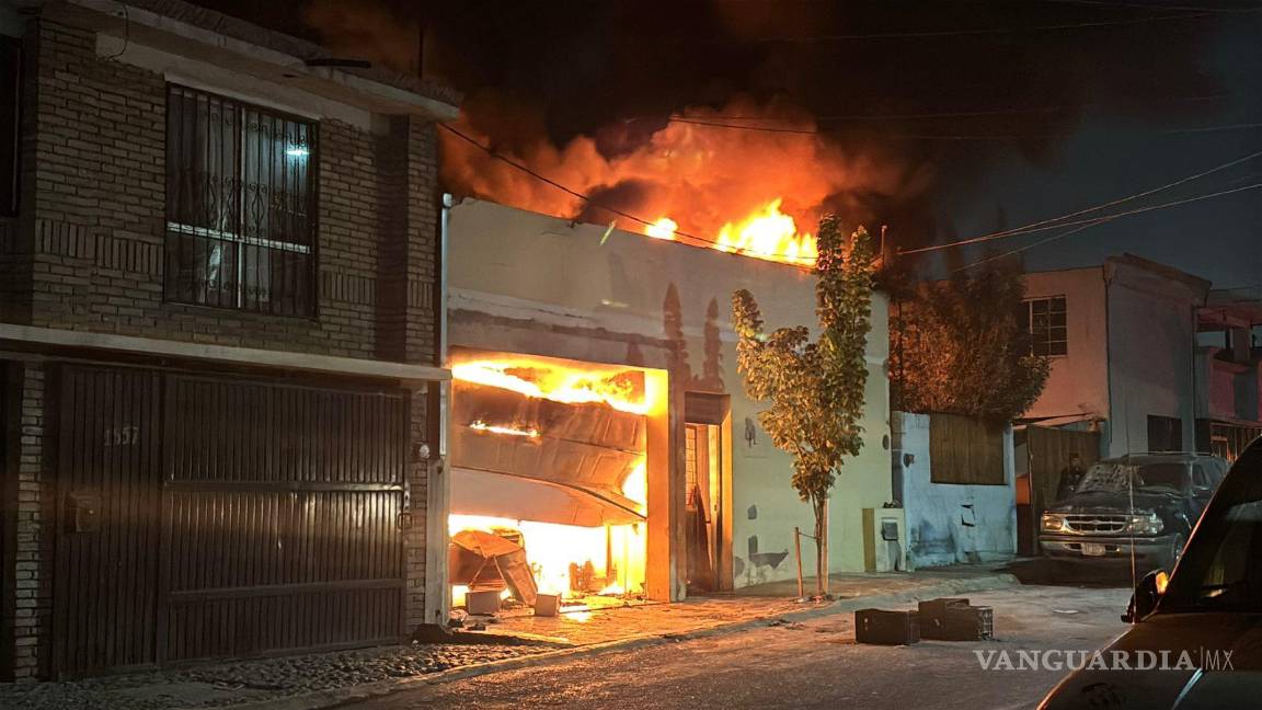 Un domicilio, que funcionaba como paletearía y nevaría, terminó envuelto en llamas tras un presunto cortocircuito en el área de los cuartos fríos, en la colonia Omega, en Saltillo.