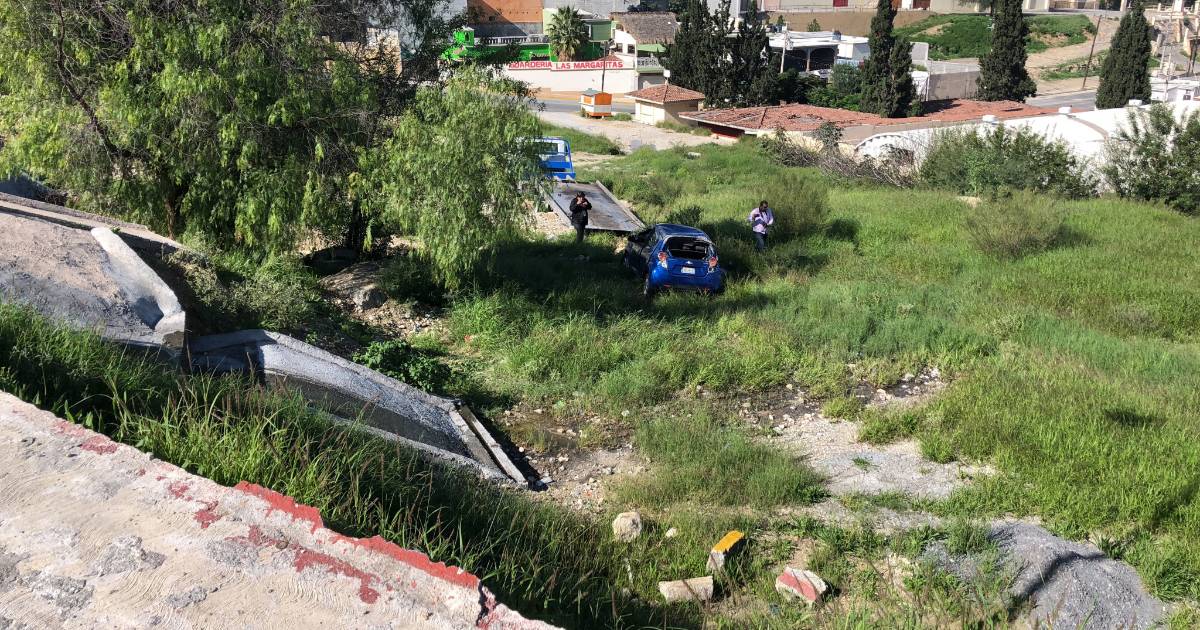 Entre las colonias Burócratas del Estado y Mirador quedó el vehículo Chevrolet Spark conducido por Delfino Jaír Gómez González, quien iba acompañado de su esposa Alma Guadalupe González, luego de caer más de ocho metros cuando circulaban por la calle Escénica, debajo del Mirador.