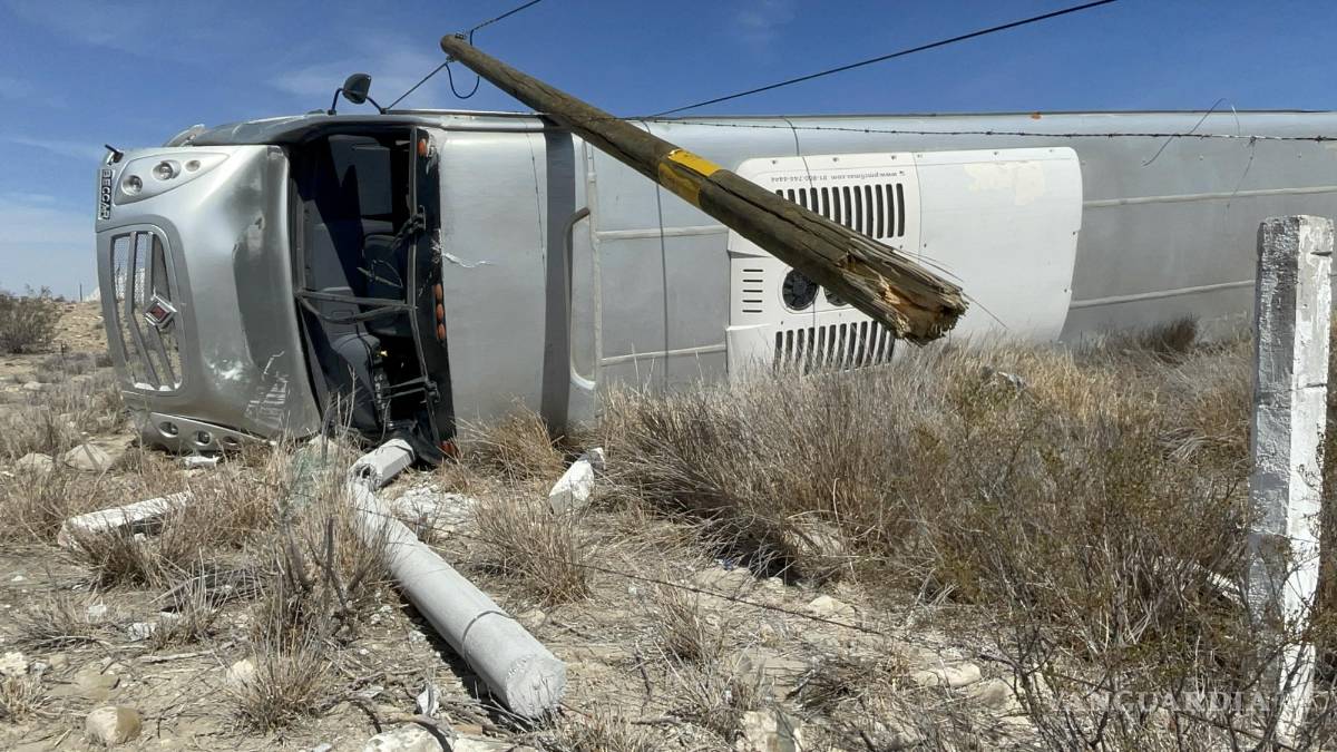 Vuelca autobús de pasajeros en Ramos Arizpe; conductora resulta lesionada