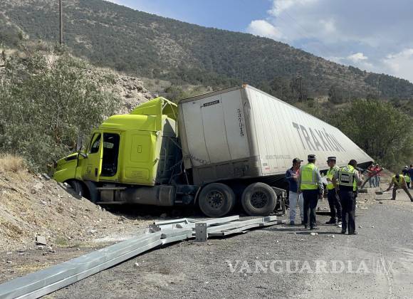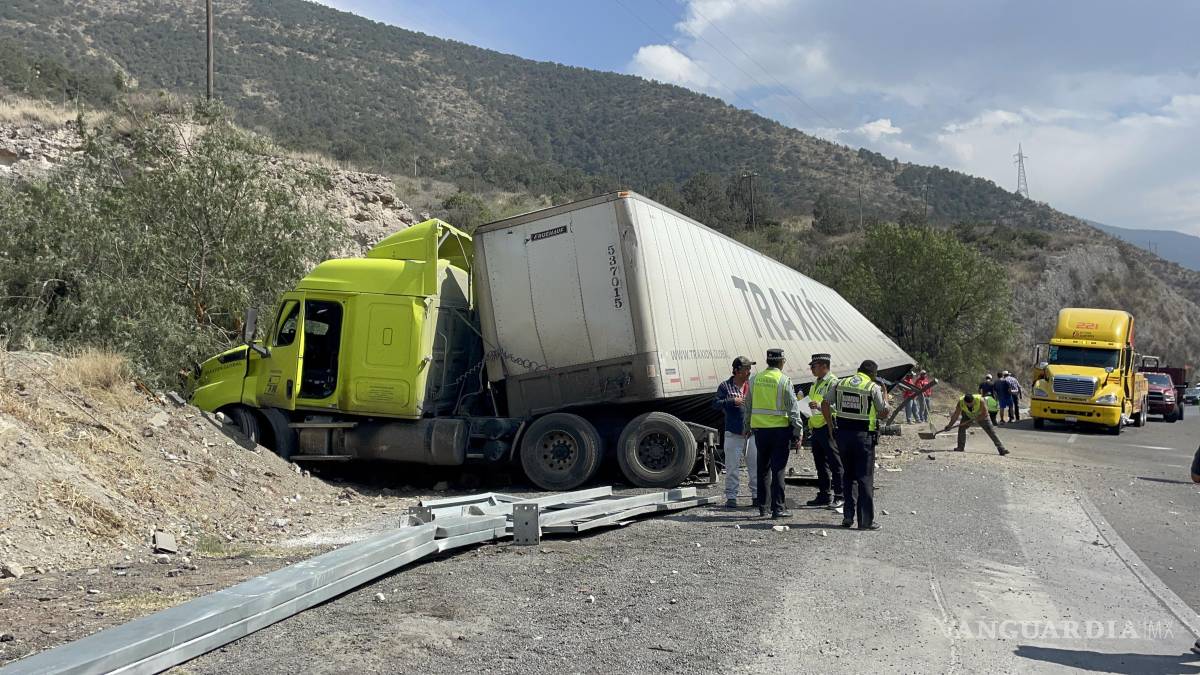 Un camión cargado con varias toneladas de detergente en polvo terminó volcado en la carretera 57, a la altura del kilómetro 232, en el tramo de Los Chorros, en el municipio de Arteaga.