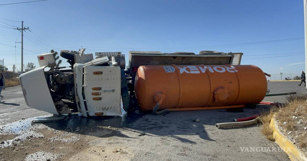 Vuelca camión de desazolve y provoca derrame de aceite en Ramos Arizpe