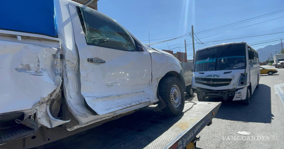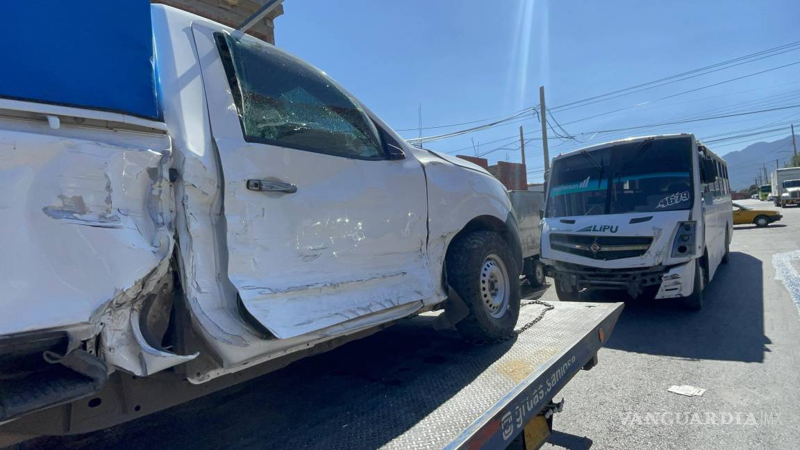 Un aparatoso accidente vehicular se registró la mañana de este lunes en el cruce de las calles Alfredo V. Bonfil y José María Morelos y Pavón, en la colonia Bellavista, en Saltillo, donde una camioneta terminó volcada sobre su costado izquierdo luego de ser impactada por un camión de transporte de personal.